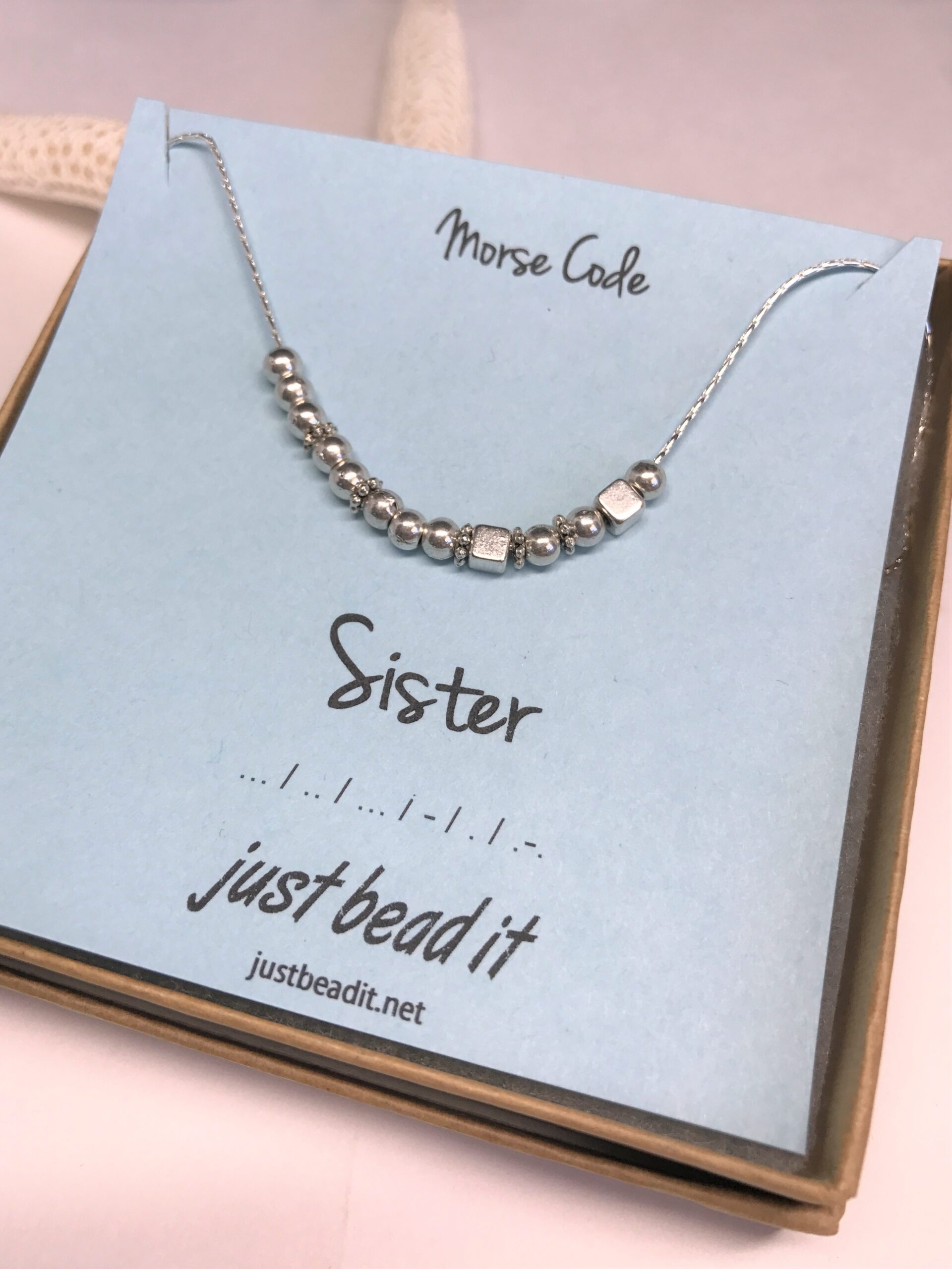Morse code is a method of transmitting information as a series of on-off tones, lights, or clicks, and has been in use for more than 160 years. We have brought the Morse code to another area… your neck! Express yourself creatively by wearing this “Sister” necklace written in Morse code.